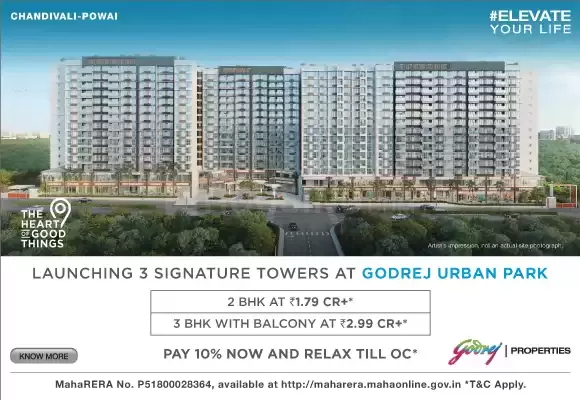 Looking for Apartment in Powai, Mumbai?. Godrej Urban Park is a project by Godrej Properties Ltd.. The project is offering 1 BHK, 2 BHK, 3 BHK. It is set in 2.71 Acres . Godrej Urban Park is a Under Construction residential project. There are 507 units. There are 9 buildings in this project. As per the area plan, units are in the size range of 431.0 - 944.0 sq.ft.. Godrej Urban Park is located in Chandivali, Powai. Godrej Urban Park was launched in February 2021.
